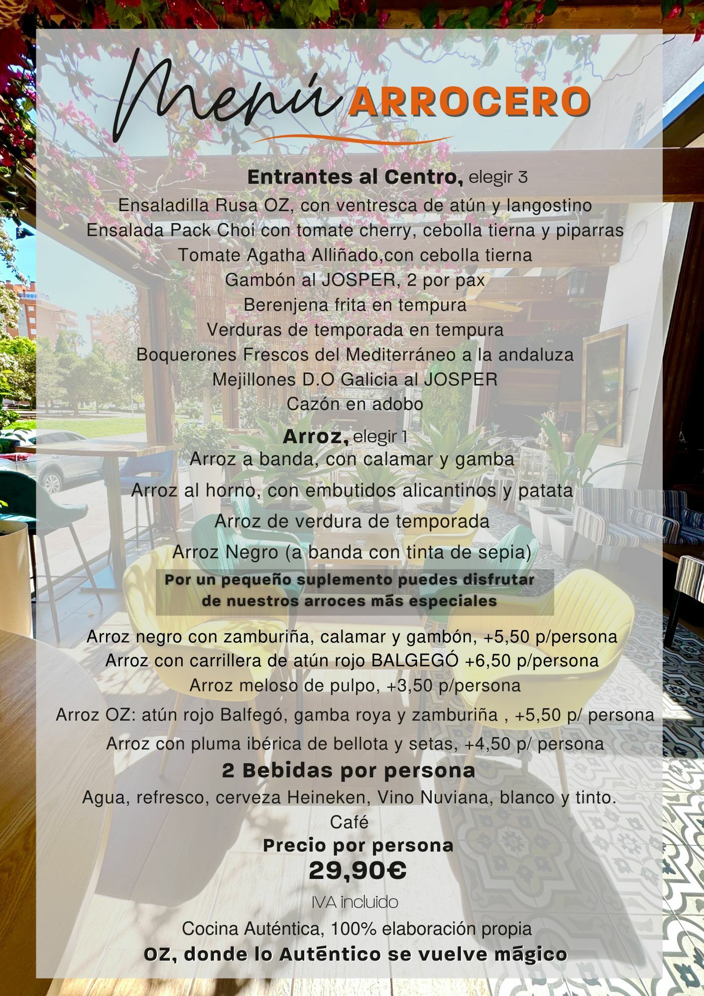En OZ, hacemos del mediodía un ritual de sabor con nuestro menú arrocero. Aquí, cada plato de arroz es auténtico, 100% elaborado en casa, sin productos precocinados. Porque sabemos que lo que comes al mediodía debe llenarte de energía y emoción, no ser solo un plato más.